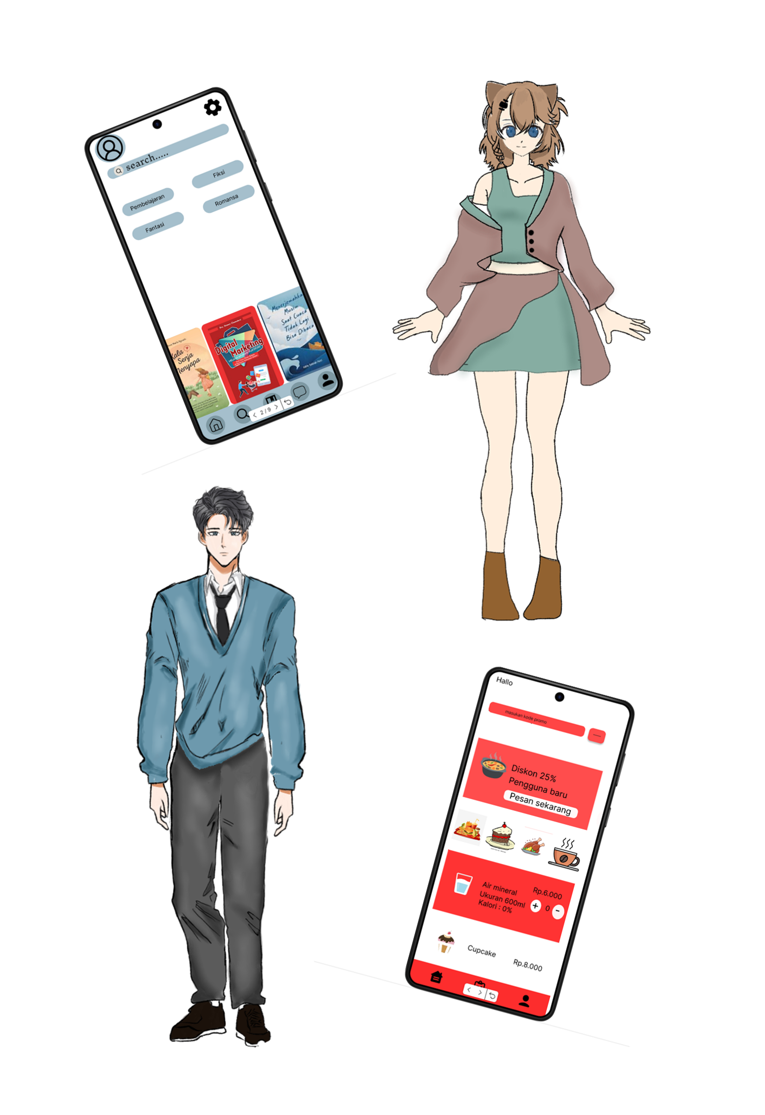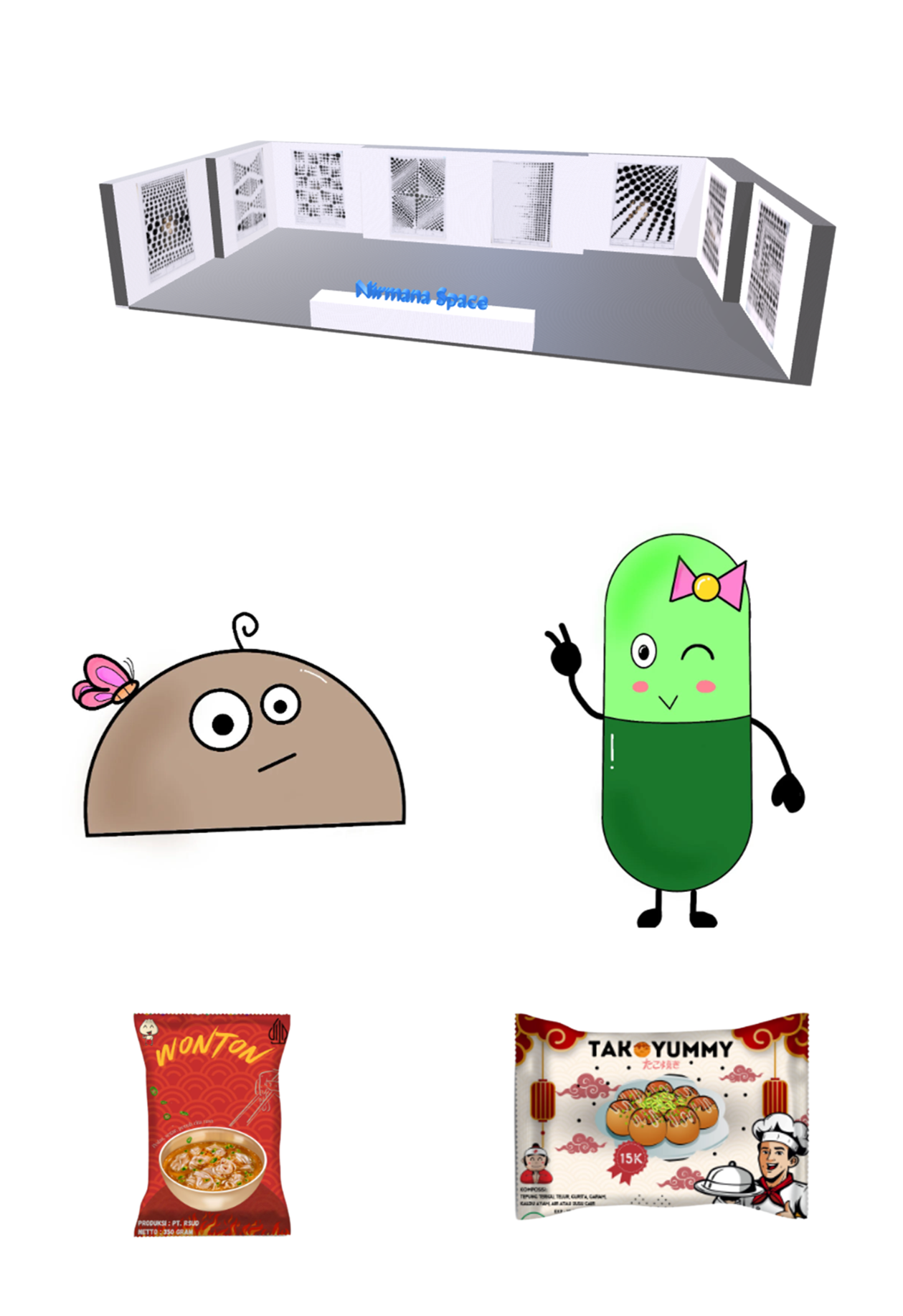 In this exhibition we have many diverse artwork such as face illustration, UI/UX wireframe, UI/UX prototype, character and sketch, basic drawing, nirmana, stop motion, web design plugin, 2D short animation, 3D model and web design bootstrap