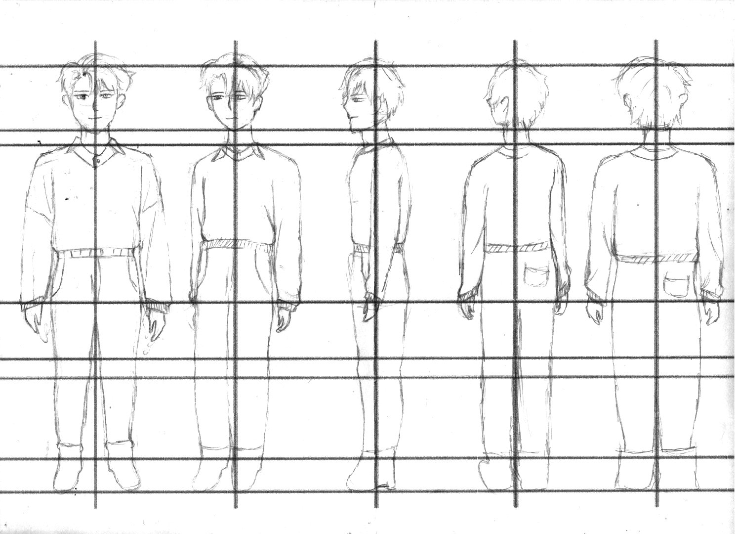 A character design sheet, model sheet, character board, character rotation or study is a document used as a guide for the appearance, pose, and movement of an original character in animation, comics, and video games. Usually, a character rotation sheet has 5 character views such as front, back, side (left), side (right) and 3/4 sections.